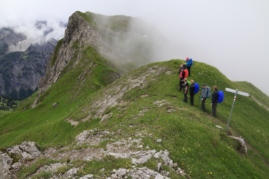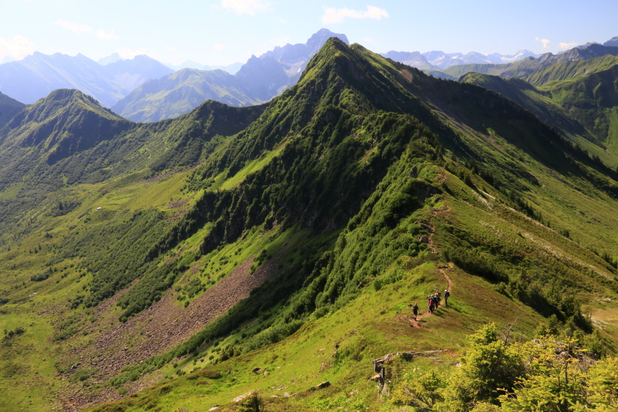 In het bekende plaatsje Schoppernau in het Oostenrijkse Bregenzerwald (Vorarlberg), op amper 8 uur rijden van bij ons, beginnen de Alpen al! Dat maakt het mogelijk dat we de namiddag van aankomst zelf nog anderhalf uur omhoog kunnen wandelen om in een gezellige berghut op de alm te overnachten. Dan lopen we in vier dagen tussen marmotten en gemzen over rotsige bergkammen met fantastische uitzichten op de Lechqueller en Allgäuer Alpen.